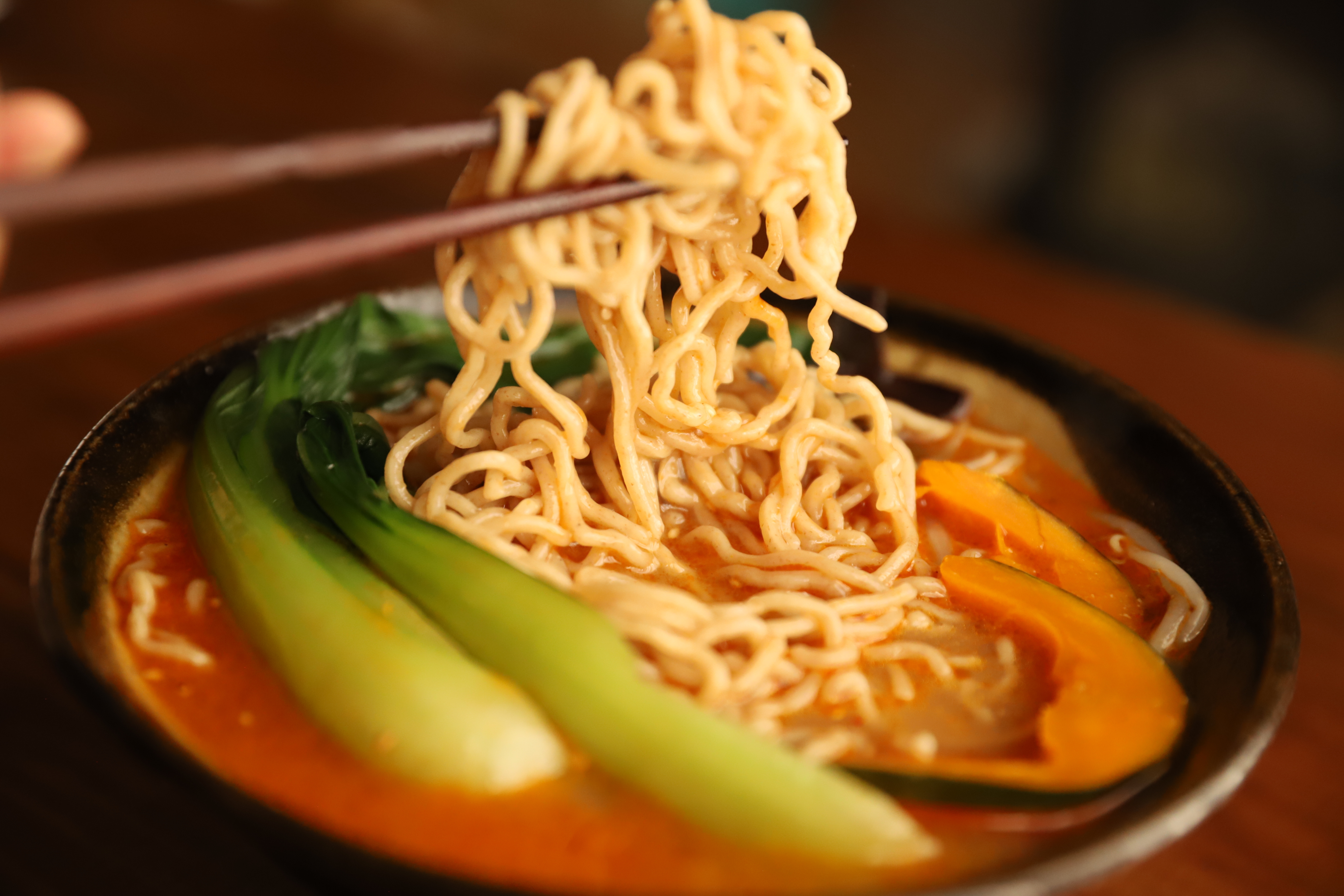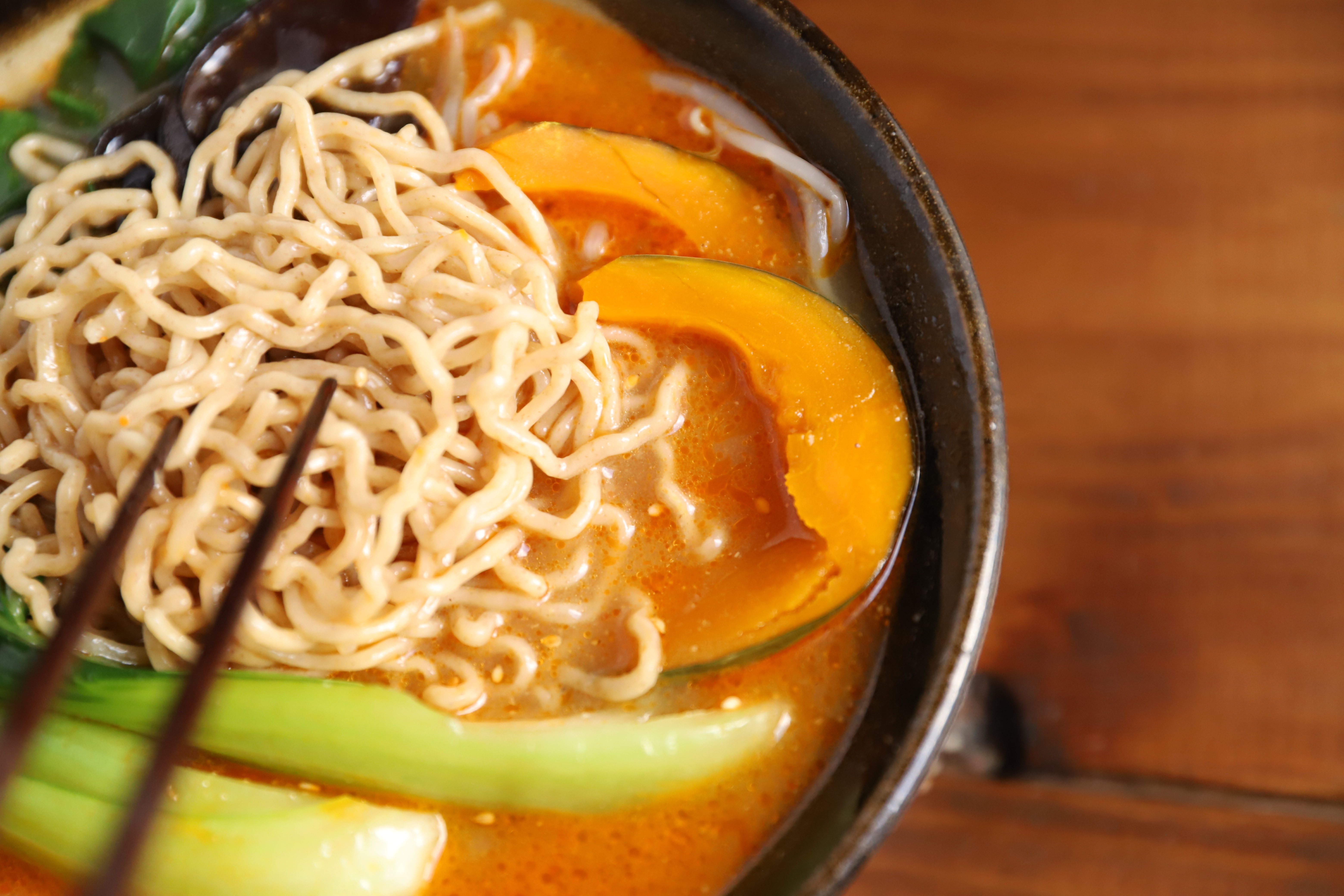 噛むほどにナッツのような香ばしい風味がふわりと広がり、少しざらっとした表面がスープをしっかりと持ち上げます。